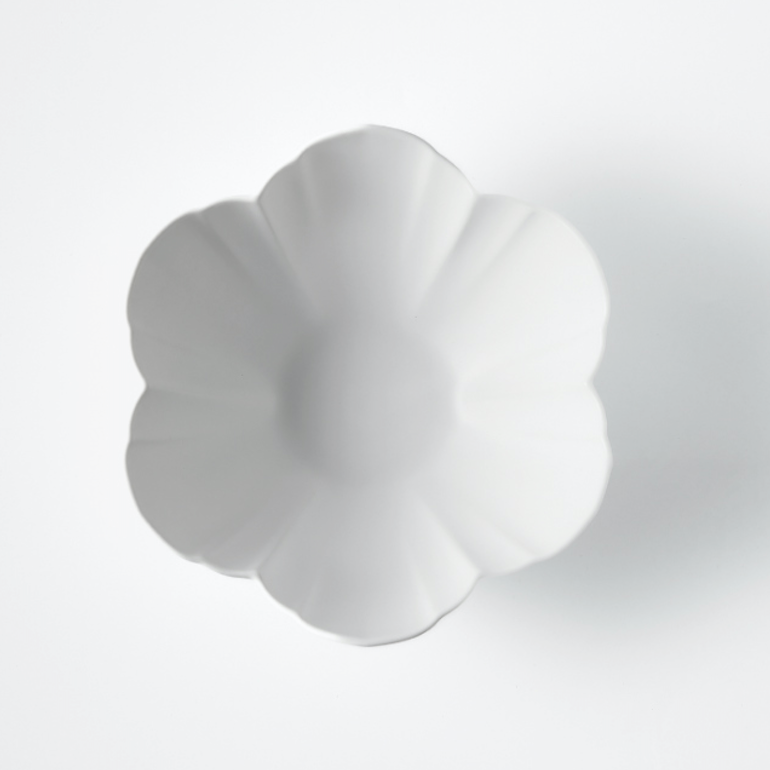 A flower-shaped bowl & plate featuring six round petals delicately outlined for a subtle and elegant look. Its size allows for a variety of uses, making it a versatile addition to your tableware collection.