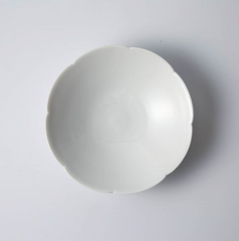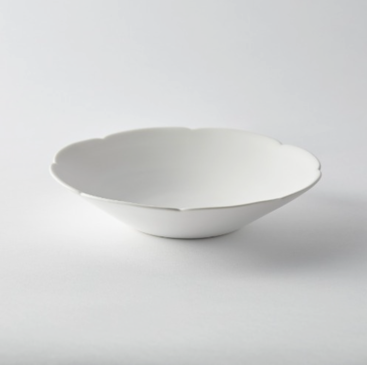 A versatile plate shaped like an eight-petal flower—perfectly sized for a range of uses, from small main dishes or side dishes to desserts.