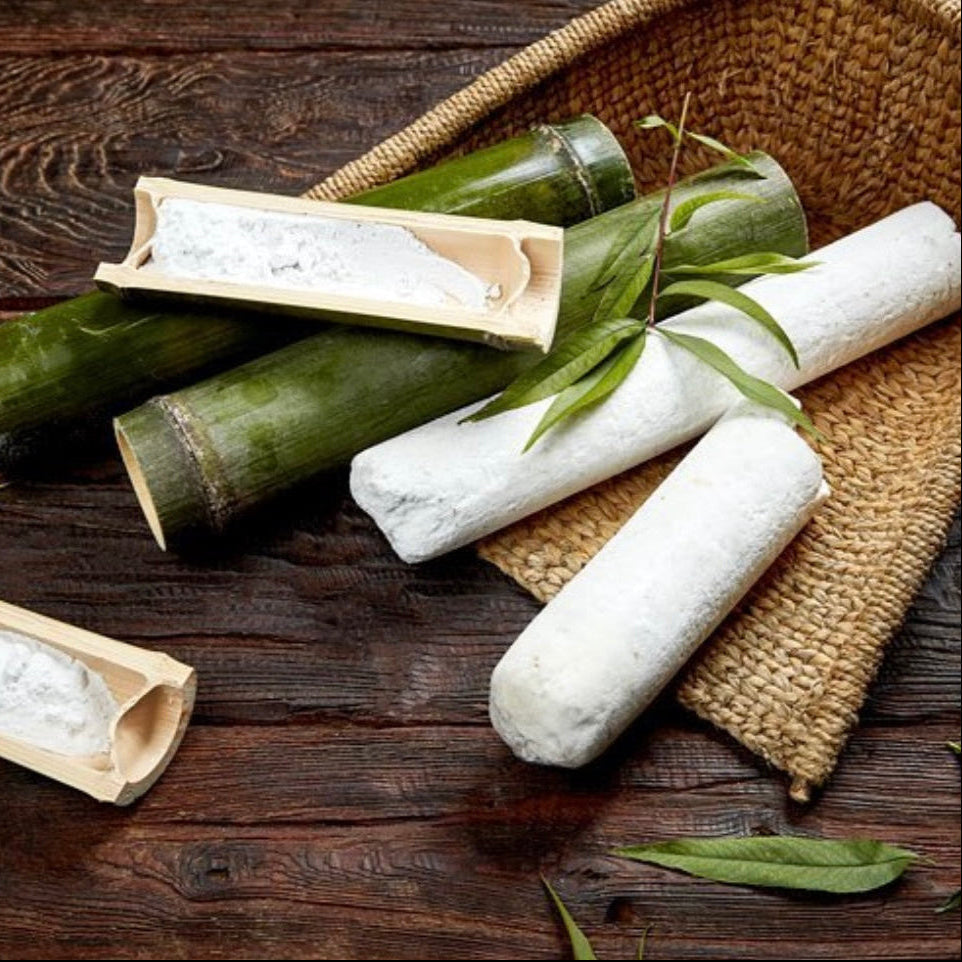 대나무의 단맛 성분이 감칠맛을 증폭시키고 천일염의 불순물을 제거해 음식 맛을 높입니다. 담양산 3년산 대나무 한 마디마다 서해안 천일염을 햇볕에 말려 채워 넣고 내화벽돌과 황토로 만든 가마에서 3일간 고온으로 구워 흰 죽염 기둥만 남깁니다.