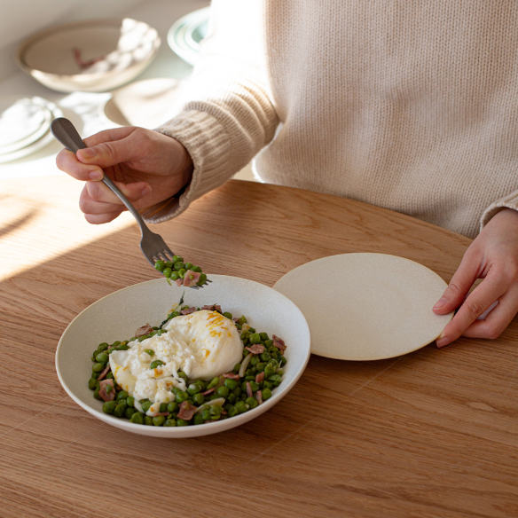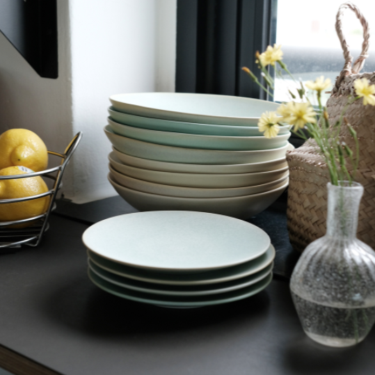 '숨'은 바다, 하늘, 숲, 그리고 계절마다 변화하는 풍경 등 자연의 다양한 색감과 유기적인 형태에서 영감을 받아 탄생했습니다. 아름다운 자연에 대한 찬사를 담아낸 그릇으로, 샐러드나 파스타, 누들 등 소스를 넉넉히 섞어야 하는 요리에 적합하지요. 또한, 얇게 저민 생선, 고기, 채소 등을 담아내는 카르파초 같이 비주얼이 중요한 요리에도 훌륭한 선택이 될거에요.
