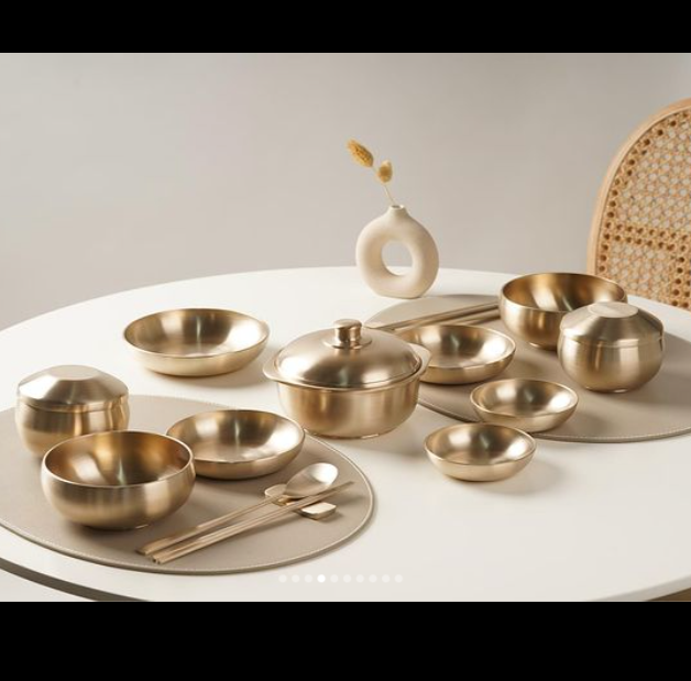 Yugi, or bangjja bronzeware, is made from an alloy of 83.3% copper and 16.7% tin with no chemical additives. Known for its elegant sheen and antibacterial qualities, it keeps food warm and safe. Joseon Yugi’s utensils are crafted using 16th-century mudflat casting techniques, resulting in durable pieces with unique character. No two items are exactly the same.