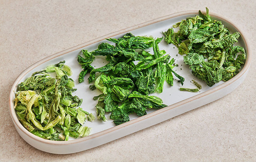 프리미엄 100% 완전 동결건조 나물로 신선한 맛, 향, 영양을 1년 내내 즐기세요.